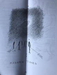 Pentekening 'Modern times', 2002, benevens de bijdrage 'Een zuchtje wind'.
